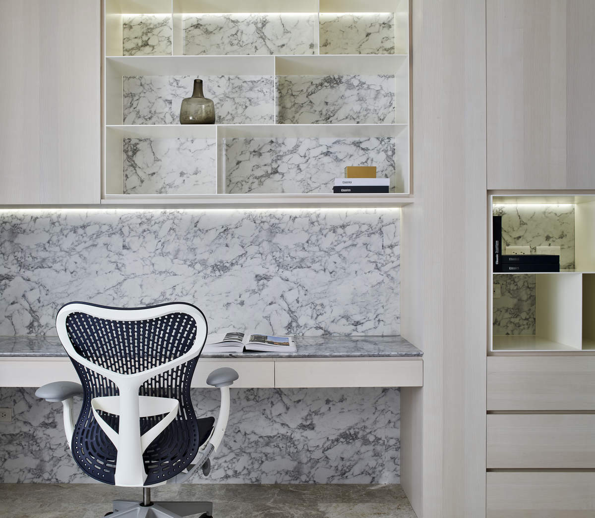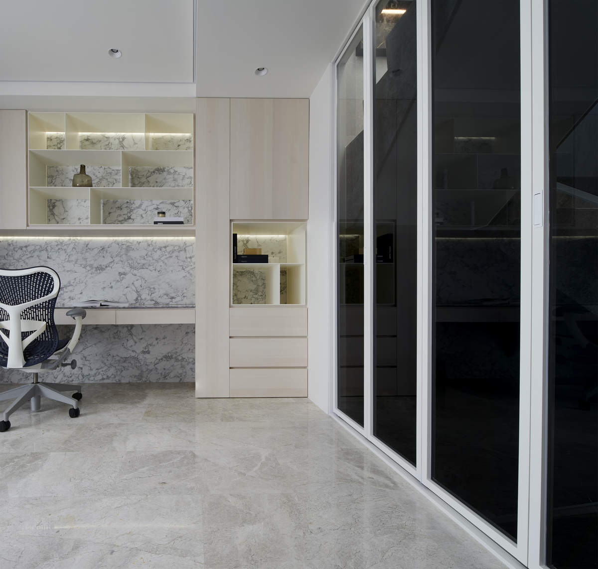 本案所處區域在台中,因為受到中央山脈群的阻擋,因此在強烈日光輻射後得到降溫效果,氣候較台灣其他地區乾涼,但因本案是狹長型的透天厝,加上左右居所緊鄰的熱效應,仍有超過35攝氏度的高溫。而台中位於背風坡,春夏晴日較多、加上春末夏初梅雨季節而常有連續陰雨,境觀設計團隊考量氣候與地理環境等因素,在本案設計了兩處天井,讓南北向的空氣充分對流;潮濕是容易讓人生病的!境觀設計團隊也特別用心考量其對健康的影響,運用天井的孔隙流通概念去提升整個家的通風,天井的設計更是用來補強狹長型透天厝的採光,可用以彌補光線的不足,所謂「光線進不來,醫生跟著來」,天井最重要的用途即是如此: 境觀設計團隊以『健康』考量去做設計,讓屋主與母親免於潮濕與陰沉,胸襟開闊接受陽光,每天生活在天地正氣間。