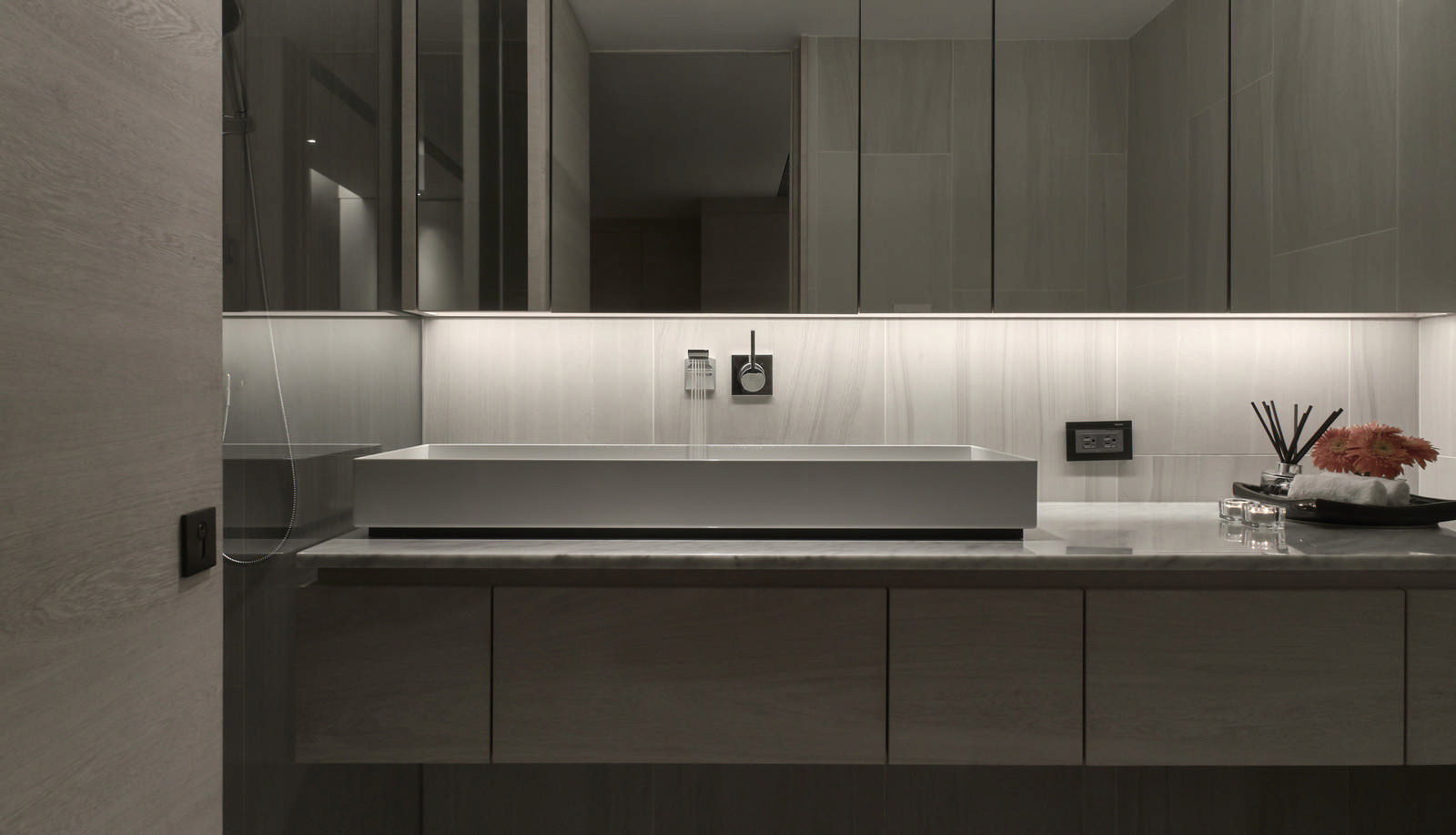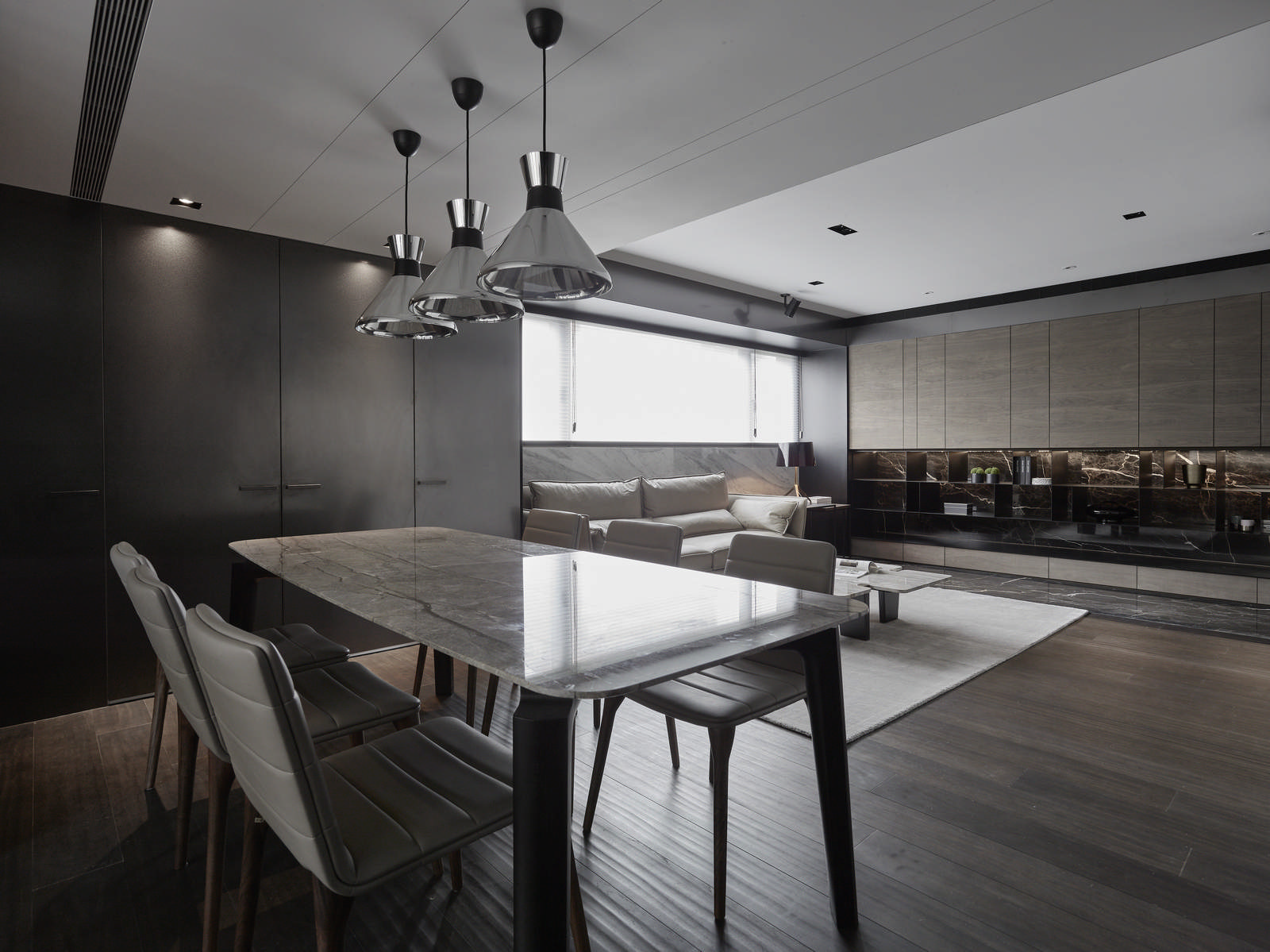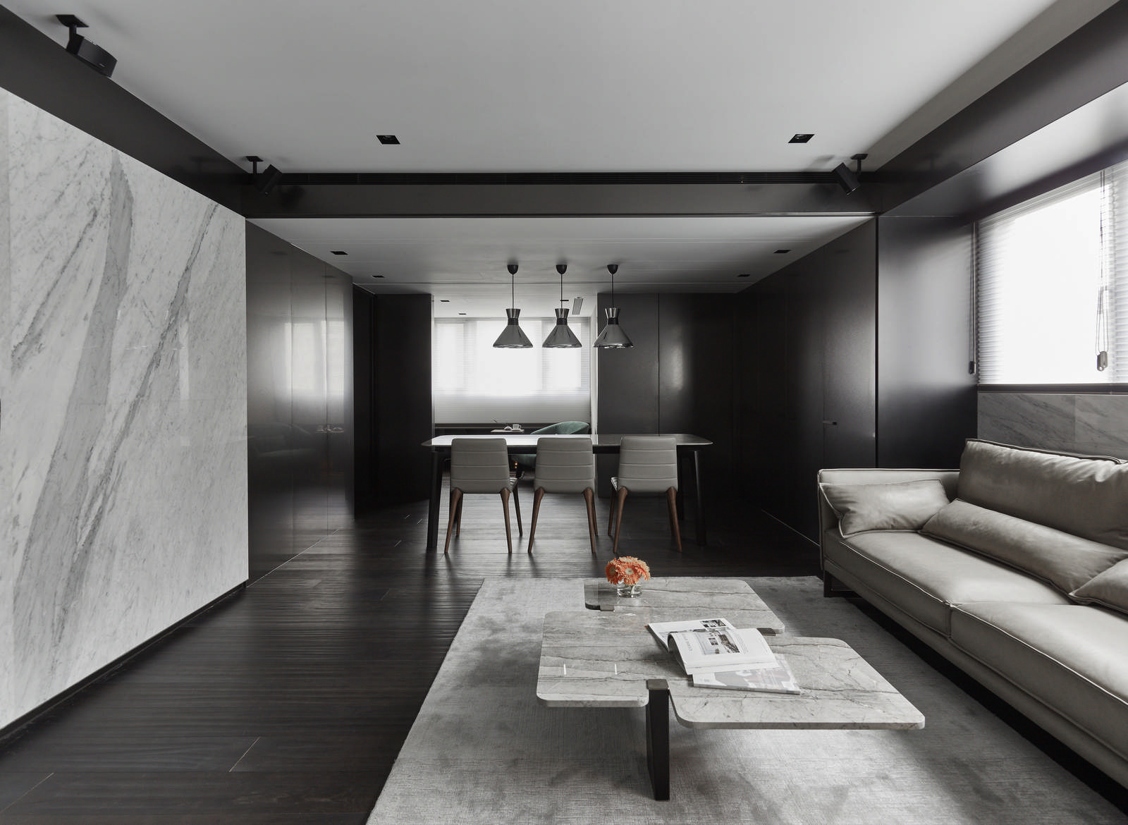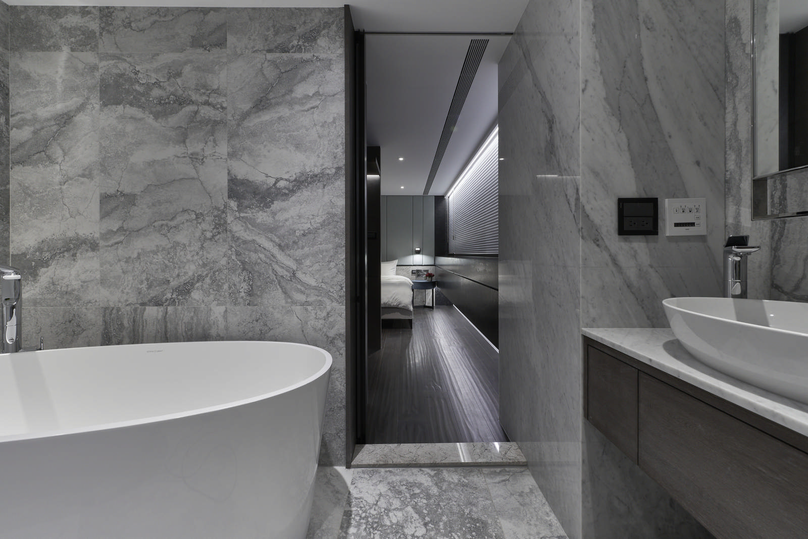 整體空間只秉持了三種色系—白、棕、灰,搭配石材、木質的天然感,讓空間散發著璞真人文素雅的底韻,帶著一股極簡雋永的風格,看似簡單的輪廓背後實則貫穿各個空間的核心概念存在,用最純粹的呈現帶給居住者最適合的美。