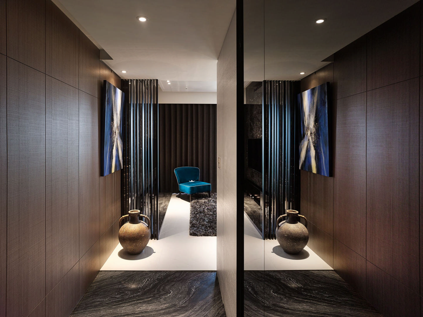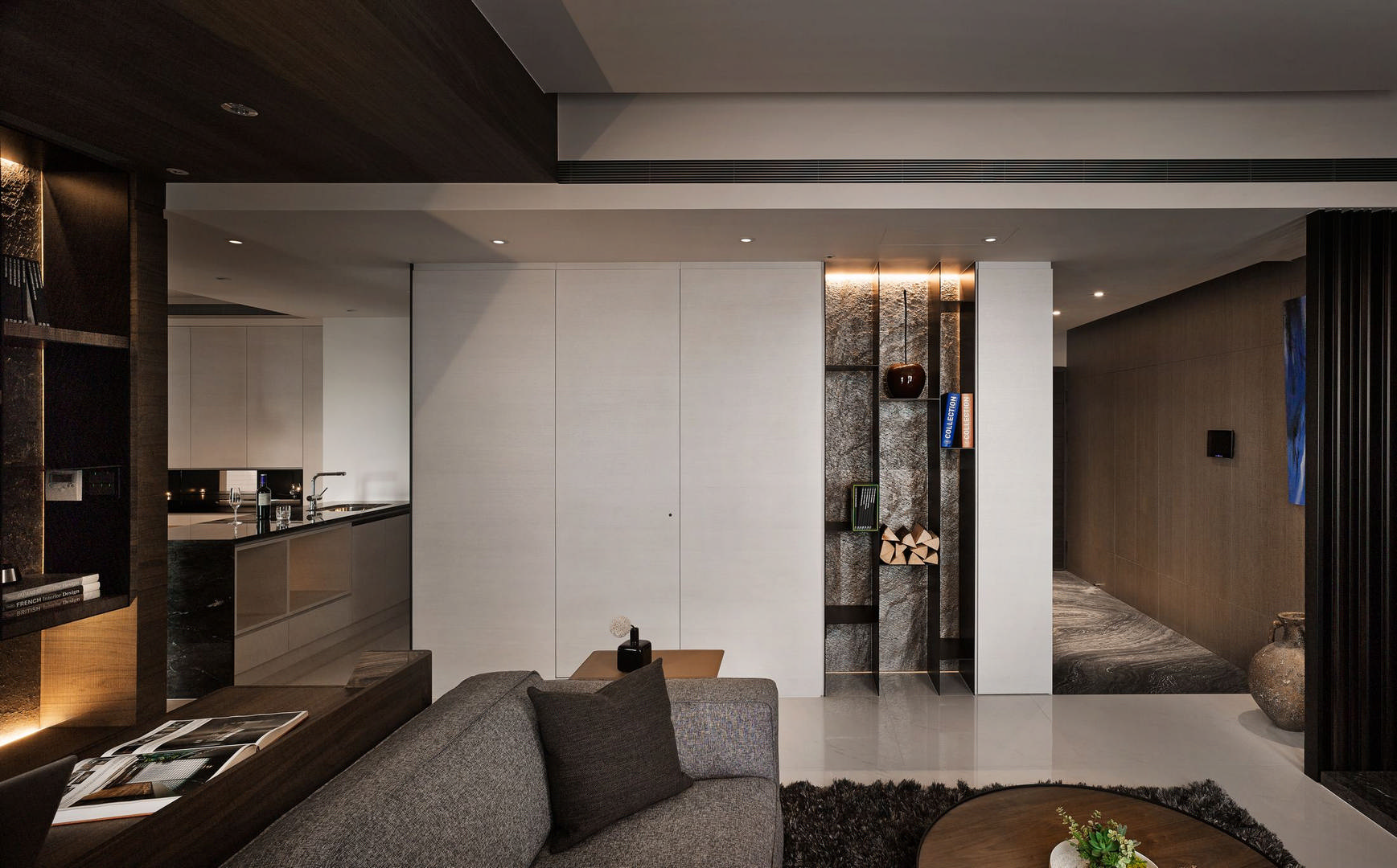 我們意欲透過簡單的陳設及充分利用空間去呈現冷靜精實的氣質,從細微中見精緻,隱密中展現光華,打造一個具有能量、可以深入觸發自性的空間,讓小隱於家的居住者,即使光芒內斂,自會久久自芬芳。